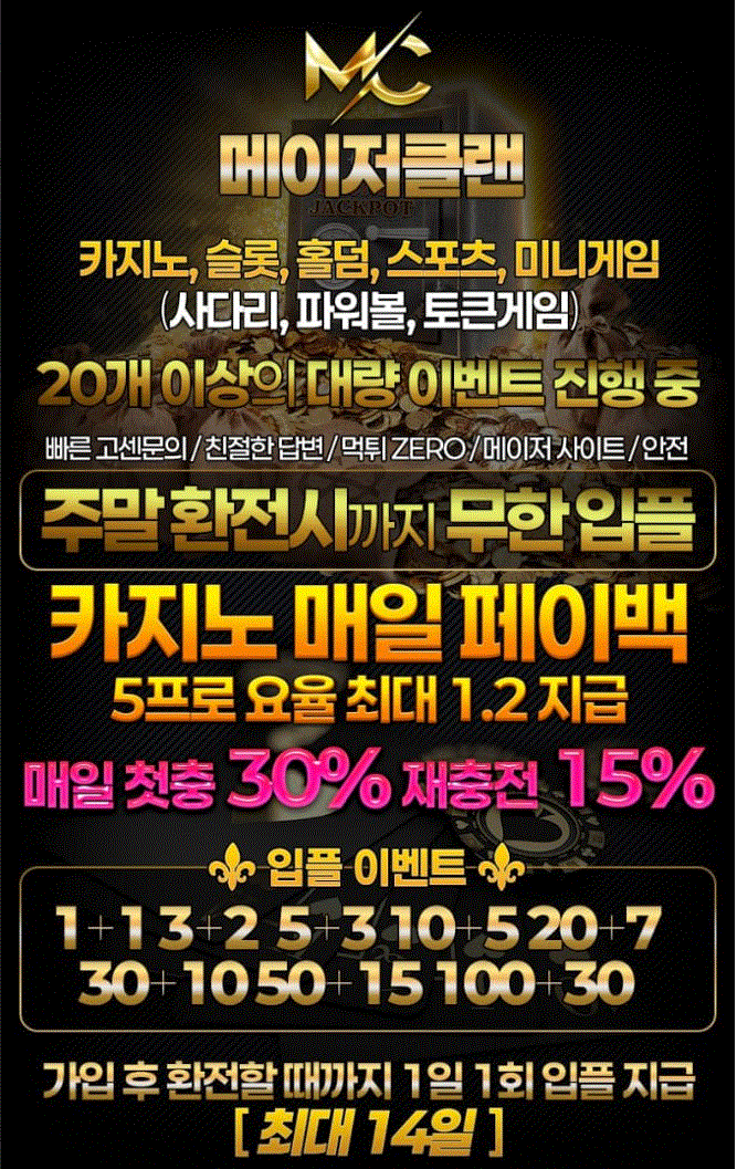 ✨MC 메이저 클랜✨신규첫충40 주말입플, 페이백 첫충30% 매충15% 대량이벤트