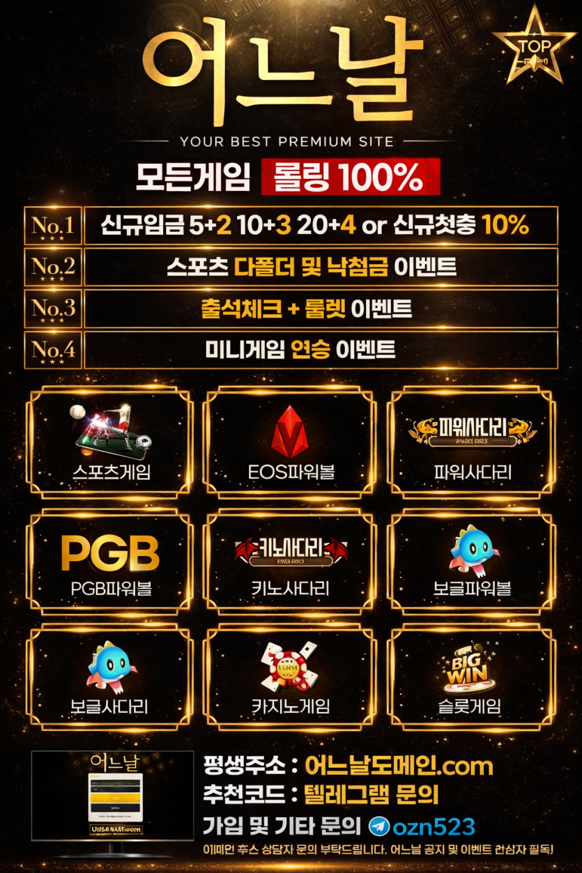 ⭐무사고 어느날⭐모든 배팅 허용 5+2/10+3/20+4 or 첫충 10%✅승전❌제재❌무사고 매달 한번씩 포인트지급⭐️